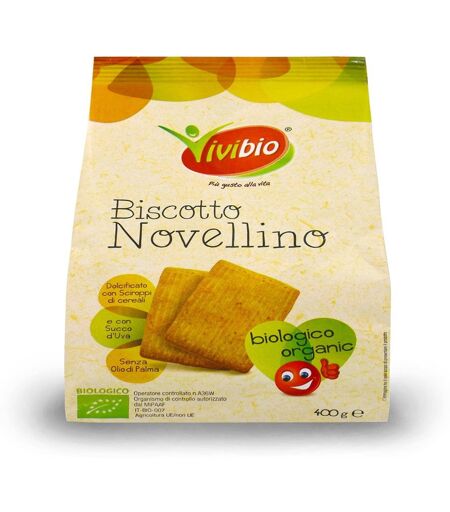Vivibio Biscotto Novellino 400 Grammi. Biscotto Novellino Di Vivibio È Un Delizioso Biscotto Dolcificato Con Sciroppi Di Cereali E Con Succo D'Uva. Non Contiene Olio Di Palma In Ricetta. ...