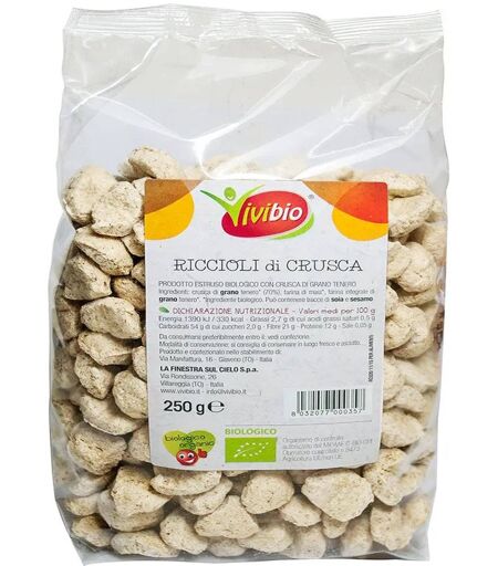 Vivibio Riccioli Di Crusca 250 Grammi. Riccioli Di Crusca È Un Alimento Biologico 100% Vegetale A Base Di Crusca Di Grano Tenero Farina Di Mais E Farina Integrale Di Grano Tenero Ideale Per Una Colazione Gustosa E Ricca Di Fibre. ...