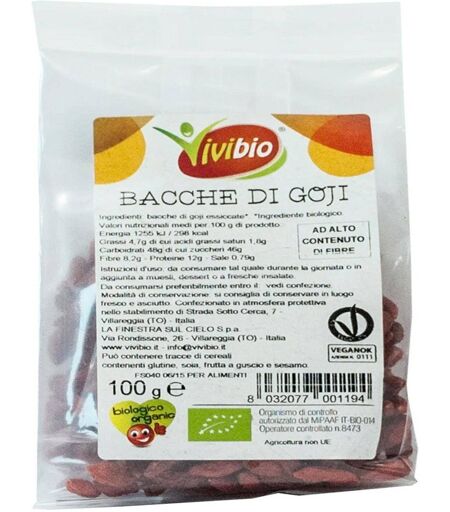Vivibio Bacche Di Goji 100 Grammi. Bacche Di Goji Contiene Sono Le Migliori Bacche Di Goji Essicate E Biologiche Ideali Come Gustosa Aggiunta A Muesli Dessert O Insalate Fresche. ...