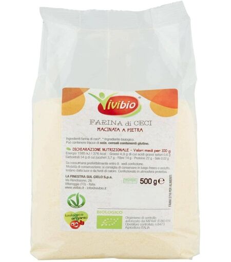 Vivibio Farina Di Ceci 500 Grammi. Farina Di Ceci Contiene Solo 100% Farina Di Ceci Ottenuta Attraverso La Tradizionale Molitura A Pietra Che Permette Di Mantenere Bassa La Temperatura Durante La Lavorazione Al Fine Di Preservare Le Caratteristiche Organolettiche Dei Ceci. ...