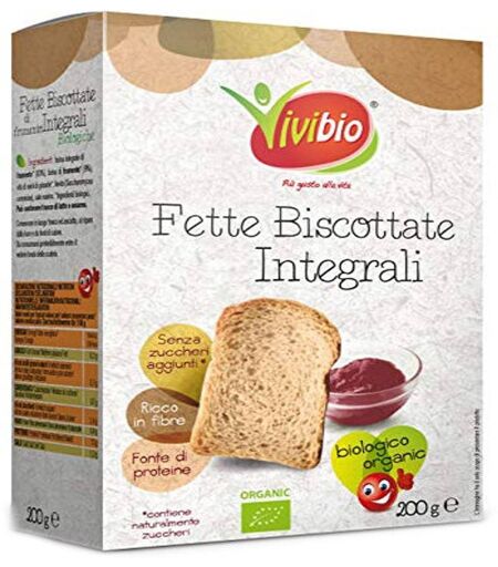 Vivibio Fette Biscottate Integrali 200 Grammi. Fette Biscottate Integrali Sono Un Fragrante Prodotto Da Forno A Base Di Farina Di Frumento Integrale Biologica E Senza Zuccheri Aggiunti. Sono Croccanti E Fragranti Ottime Per Una Gustosa Colazione. ...