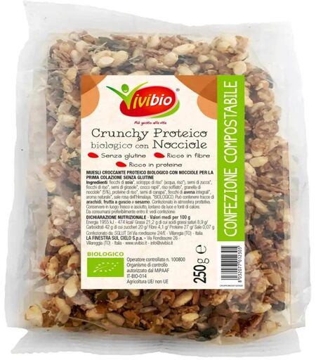 Vivibio Crunchy Proteico Bio Con Nocciole 250 Grammi. Crunchy Proteico Bio Con Nocciole È Un Muesli Croccante Proteico Con Nocciole Ideale Per Una Colazione Gustosa E Ricca Di Fibre. ...