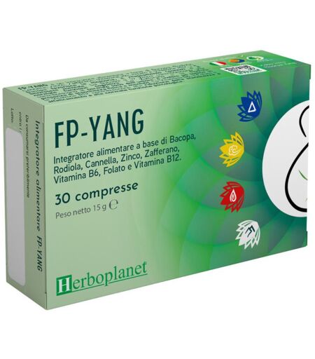 FP YANG - Descrizione Integratore alimentare a base di Bacopa, rodiola, cannella, zinco, zafferano, vitamina B6, folato e vitamina B12. La Bacopa favorisce la memoria, il rilassamento (sonno) e il benessere mentale. La Bacopa e lo zinco contribuiscono alla normale funzione cognitiva. Lo zafferano e… ...