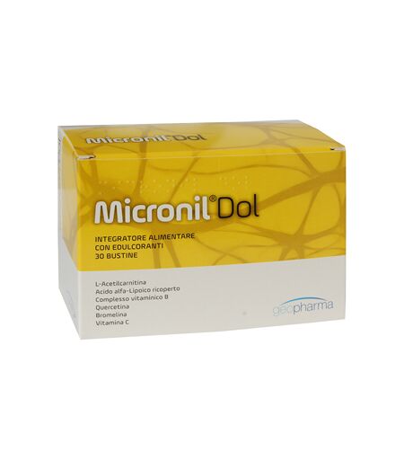 Micronil Dol - Descrizione Integratore alimentare a base di L - acetilcarnitina cloridrato acido alfa - lipoico quercetina bromelina vitamine del gruppo B e vitamina C è utile in caso di aumentato fabbisogno dei nutrienti contenuti. In particolare la vitamina C contribuisce alla normale formazi… ...