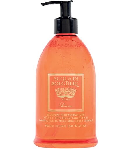ACQUA DI BOLGHERI BIO - SAPONE DELICATO MANI VISO SCIROCCO - Descrizione Sapone liquido bio e vegan nichel tested con fragranza Scirocco. Ideale per mani e viso. Ha una formula delicata con camomilla bio olio di oliva bio nutriente e vitamina E antiossidante. Dona un essenza fresca con note mari… ...