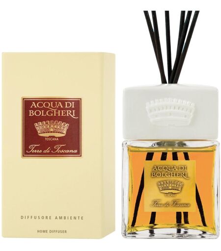 Profumatore per Ambienti con Note Legnose e Speziate - DESCRIZIONE PRODOTTO: - Il Diffusore Ambiente Terre Di Toscana di Acqua di Bolgheri è un'elegante fragranza per la casa ispirata all’autenticità della natura toscana. Un profumatore raffinato, racchiuso in un vaso in vetro pregiato con tappo in… ...