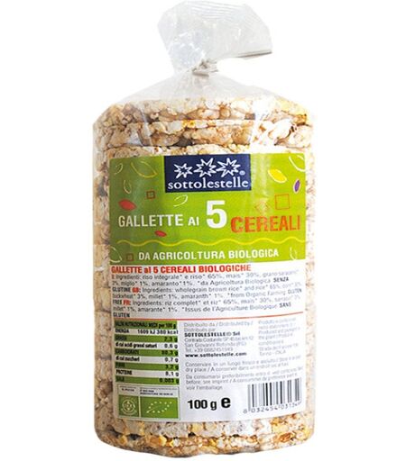 Sotto Le Stelle Gallette Ai 5 Cereali 100 Grammi. Le Gallette Ai 5 Cereali Sono Ottenute Tramite Pressione A Caldo Del Chicco Di Cereale. Con Questo Metodo Produttivo Rimangono Invariati I Valori Nutrizionali Ed Il Prodotto Risulta Leggero E Fragrante. ...
