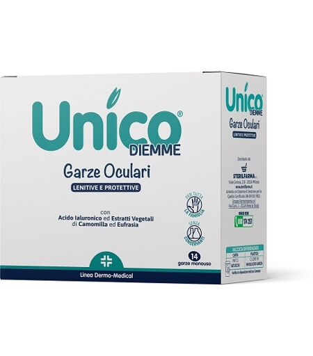 Unico - Garze oculari - Descrizione Dispositivo medico indicato per la detersione e l'igiene dell'occhio di adulti e bambini. Sono in 100% cotone naturale ed imbibite di una soluzione di acido ialuronico ed estratti vegetali (Camomilla recutita Euphrasia officinalis) in grado di svolgere un'attiv… ...