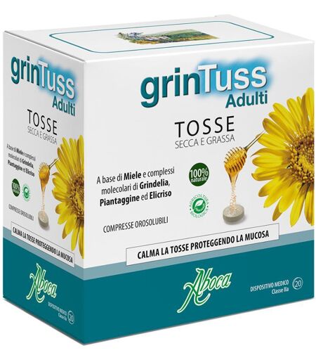 Aboca spa societa' agricola Grintuss 20compresse Con Poliresina Agisce Su Tosse Grassa E Secca A Base Di Miele Svolge Azione Protettiva E Lenitiva Delle Prime Vie Aeree