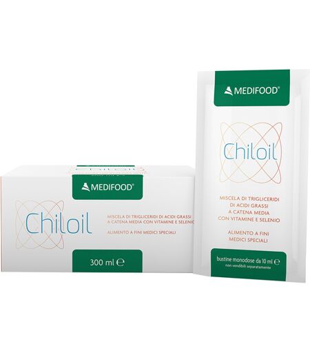 Chiloil - Descrizione Alimento a fini medici speciali. Miscela di trigliceridi di acidi grassi a catena media con vitamine e selenio. È indicato per la gestione dietetica di supporto in patologie a carico del sistema linfatico: linfedema primario o secondario chilotorace linfangectasie intestinal… ...