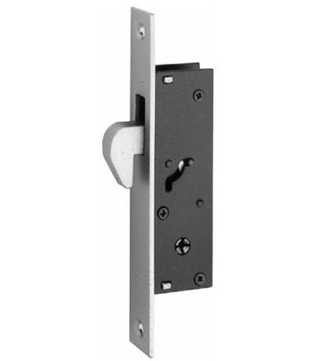 Art. 304K solo gancio basculante. Cilindro a spillo. Completa di contropiastra, 2 copritoppa e 2 chiavi a spillo. Frontale in acciaio nichelato 20 mm Entrata 20 mm ...