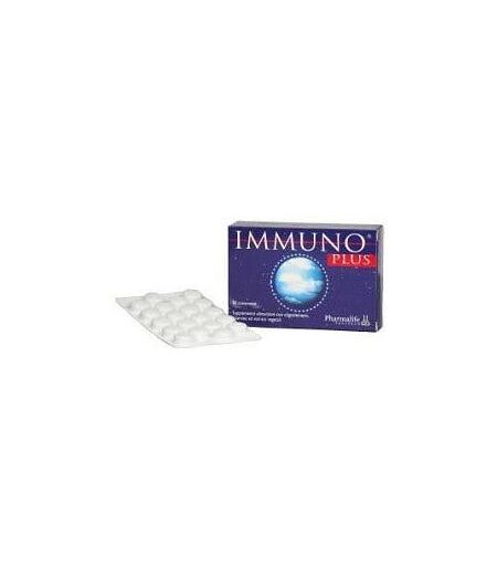 Immuno Plus Integratore alimentare a base di estratti vegetali, vitamine e minerali. Ingredienti Estratto secco di Astragalo radice (Astragalus membranaceus, maltodestrina); agente di carica: cellulosa microcristallina; estratto secco di Eleuterococco radice (Eleutherococcus senticosus, maltodestrina), estratto secco di Rosa canina frutti (Rosa canina, maltodestrina) titolato al 70% in Vitamina C, estratto secco di Uncaria corteccia (Uncaria tomentosa, maltodestrina); agente di carica: calcio fosfato; polvere di Spirulina tallo (Spirulina platensis), Zinco gluconato, Lievito al Selenio; Antiagglomeranti: magnesio stearato, biossido di silicio; Vitamina E (DL-alfa-tocoferil acetato, amido alimentare modificato, maltodestrina), Rame gluconato, Betacarotene, estratto granulare di Curcuma rizoma (Curcuma longa, maltodestrina). Caratteristiche nutrizionali Valori mediper 100 gper 2 compresse%VNR*Astragalo radice e.s.30,6 g0,52 g Eleuterococco radice e.s.13,5 g0,23 g Rosa canina frutti ...