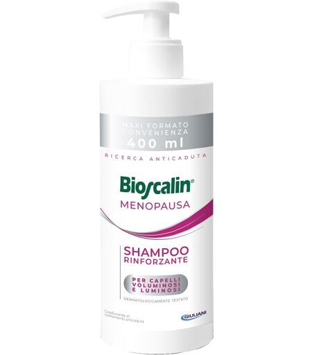 Bioscalin MENOPAUSA - Descrizione Shampoo rinforzante. Le alterazioni metaboliche e fisiologiche che si verificano in pre - menopausa e menopausa possono avere un impatto sulla salute dei capelli rendendoli più sottili e quindi soggetti alla caduta. Inoltre i capelli possono apparire spenti opac… ...