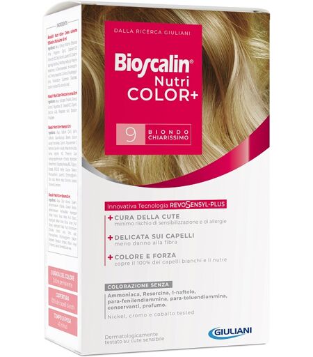 Bioscalin Nutri COLOR+ 9 - BIONDO CHIARISSIMO - Descrizione Colorazione permanente che grazie alla Tecnologia RevoSensyl - Plus e all'eliminazione dei più comuni sensibilizzanti (senza ammoniaca resorcina para - fenilediammina para - toluendiammina L - naftolo conservanti profumo) consente … ...
