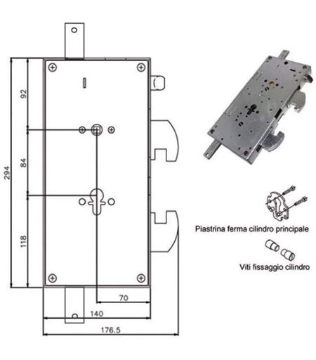 Serratura cilindro europeo a planare 2 chiusure verticali Chiusura 2 ganasce contrapposte e scroccoMisura scatola mm 140x294x30 - Entrata mm 70 Cilindro non incluso Staffa fissaggio cilindro e viti incluse ...