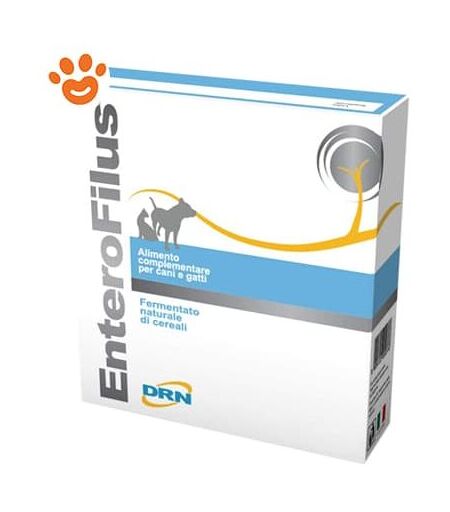 Alimento complementare per cuccioli e adulti di cane e gatto, in forma liquida facile da somministrare, disponibile anche in fiale. Il prodotto deriva da un processo naturale di fermentazione acida dei cereali con produzione di enzimi che favoriscono una assimilazione fisiologica della razione alimentare. Composizione: Frumento tenero; frumento duro; orzo; segale; lievito di birra (fonte di mannanoligosaccaridi – MOS); inulina di cicoria; prodotti derivati dalla trasformazione di erbe; batteri lattici. Indicazioni: Grazie alla sua innovativa formulazione, Enterofilus®: Migliora l’assorbimento intestinale e favorisce una rapida ripresa della funzionalità intestinale dopo patologie gastroenteriche (intossicazioni, diarree, …) ottimizza l’assorbimento e la digestione della razione alimentare, per cui è indicato anche nei cambi di alimentazione (per es. svezzamento dei cuccioli) o nei casi di malassorbimento; ripristina l’efficienza dell’ecosistema intestinale, fortemente alterata da ...