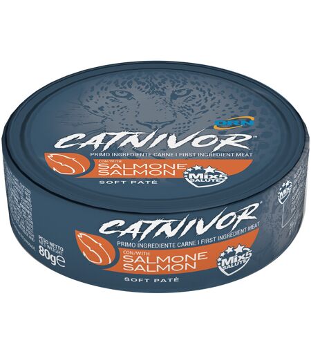 CATNIVOR SALMONE Descrizione Alimento completo per gatti adulti. Ingredienti Carne di pollo (17%), cuore di maiale, fegato di pollo, salmone (6%), pollame, sostanze minerali, riso fermentato, destrine, amido di mais, frutto-oligosaccaridi e lievito idrolizzato (fonte di MOS) 0,02%, alghe (0,004%), olio di krill (0,002%), estratto secco di mirtillo rosso (0,001%). Additivi nutrizionali: vitamina D3 35 UI, vitamina E 5 mg, taurina 600 mg. Componenti analitici Valori per scatoletta Umidità 80% Proteina grezza 7% Oli e grassi grezzi 5% Fibra grezza 0,5% Ceneri grezze 1,3% Modalità d'uso Servire a temperatura ambiente. Lasciare a disposizione dell'acqua. Razione giornaliera: Peso gatto (kg) quantità di alimento 2 120 g 3 160 g 4 190 g 5 230 g 6 260 g 7 290 g 8 320 g Conservazione Conservare in luogo fresco ed asciutto. Dopo l'apertura conservare in frigo e utilizzare entro le 48 ore successive all'apertura. Termine ultimo di conservazione dalla data di produzione, in confezione integra: 36 mesi. Formato Lattina da 80 g. Cod. PR2000600 ...
