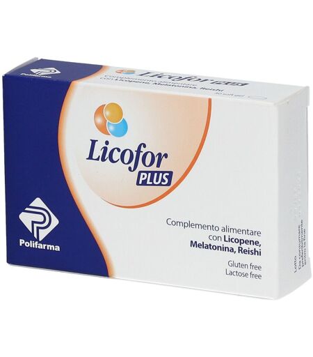 Gli integratori non sostituiscono un’alimentazione equilibrata e variegata e uno stile di vita sano. Integratore alimentare a base di Licopene (Lyc-O-Mato), Melatonina e Reishi (Ganoderma lucidum (Curtis) P. karst.). Licofor Plus contiene inoltre Luteina, Zeaxantina, Zinco e vitamine utili per colmare le carenze alimentari o gli aumtnetati fabbisogni organici di tali nutrienti. In particolare, la vitamina B2 (riboflavina) e lo Xinco contribuiscono alla protezione delle cellule dallo stress ossidativo ed al mantenimento della capacità visiva normale. Ingredienti:Olio di girasole; involucro: gelatina alimentare; agente di resistenza: glicerolo; colorante: E172 (ossido di ferro rosso); reishi estratto secco std al 30% [Ganoderma lucidum (Curtis) P. Karst, sporocarpo], gluconato di zinco, tagete estratto secco std al 20% luteina (Tagetes erecta L., fiore), pomodoro estratto std al 15% licopene (Solanum lycopersicum L., frutto), tagete estratto secco std al 10% zeaxantina (Tagetes erecta L., fiore); addensante: mono- e digliceridi degli acidi grassi; emulsionante: lecitina di girasole; cloridrato di piridossina (vitamina B6), riboflavina (vitamina B2), cloridrato di tiamina (vitamina B1), melatonina, cianocobalamina (vitamina B12), acido pteroil-monoglutammico (acido folico), colecalciferolo (vitamina D). Senza glutine. Senza lattosio. Analisi media per dose max giornalierapari a 1 capsula %Vnr* Melatonina 1 mg Vitamina B1 1,1 mg 100 Vitamina B2 1,4 mg 100 Vitamina B6 2 mg 143 Vitamina D 5 mcg 100 Vitamina B12 1 mcg 40 Zinco 10 mg 100 Pomodoro estrattodi cui licopene 30 mg4,5 mg Reishi e.s.di cui polisaccaridi 100 mg30 mg Tagete e.s.di cui luteina 50 mg10 mg Tagete e.s.di cui zeaxantina 20 mg2 mg *Vnr = Valori Nutritivi di Riferimento Modo d'uso:Si consiglia l'assunzione di 1 capsula al giorno dopo il pasto serale, da deglutire con acqua. Avvertenze:Non superare la dose giornaliera raccomandata.Tenere fuori dalla portata dei bambini al di sotto dei tre anni. Conservazione:Conservare in luogo fresco ed asciutto al riparo dalla luce, dalle fonti di calore localizzate e dai raggi solari ed evitare il contatto con l’acqua. Contenuto netto:30 soft gel = 24.30 g Produttore:Farmigea SpaVia G. B. Oliva, 6/856121 Pisa Italia ...