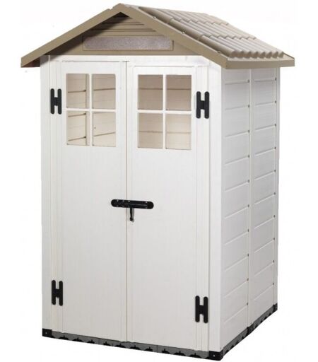 EZOOZA Casetta da Giardino in Resina Tuscany Evo 120 con 2 porte centrali, Pavimentazione inclusa, colore Beige, 137x144x214h cm