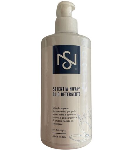 SCIENTIA NOVA OLIO DETERGENTE Descrizione Detergente ultra-delicato formulato per la detersione quotidiana della pelle secca e sensibile o soggetta a pruriyo, arrossamenti e disidratazione a tendenza atopica. La sua formula estremamente delicata, arricchita con oli emollienti e agenti lenitivi, deterge senza aggredire, rispettando e ripristinando il film idrolipidico cutaneo. Ideale per viso e corpo, anche per uso frequente su neonati, bambini e adulti. Modalità d'uso Utilizzare durante il bagno o la doccia su pelle umida. Applicare una piccola quantità di prodotto, massaggiare delicatamente e risciacquare accuratamente. Asciugare la pelle tamponando delicatamente con un asciugamano morbido. Componenti Glycerin, aqua, sodium lauroyl glutamate, polysorbate 20, PEG-7 glyceryl cocoate, hydrogenated starch hydrolysate, potassium undecylenoyl hydrolyzed soy protein, potassium sorbate, cocamidopropyl betaine, decyl glucoside, Oenothera biennis oil, Simmondsia chinensis seed oil, tocopheryl acetate, glycine, citric acid, sodium phytate, sodium benzoate, xanthan gum. Conservazione Validità post-apertura: 6 mesi. Formato Flacone da 400 ml. ...