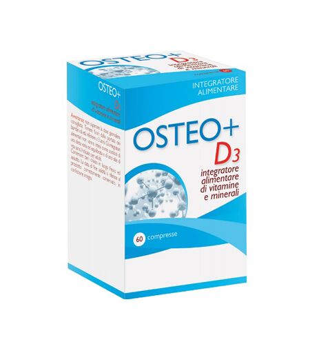 OSTEO+ D3 - Descrizione Integratore alimentare di vitamine e minerali. Calcio e vitamina D3, in forma altamente biodisponibile. Indicato nei casi di carenza di calcio e vitamina D, osteoporosi e menopausa. Proprietà - Calcio lattato: sale dell'acido lattico. Favorisce il mantenimento di ossa e dent… ...