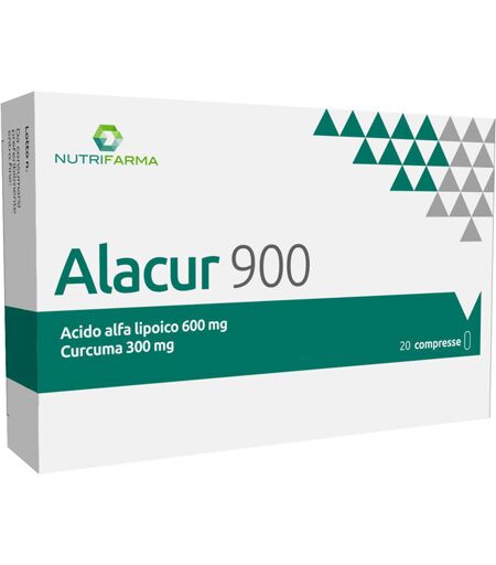 Alacur 900 - Descrizione Integratore alimentare con acido alfa lipoico (600 mg) e curcuma (300 mg). Ingredienti Acido alfa lipoico, curcuma (Curcuma longa L., rizoma) e.s. tit. 95% in curcumina, agenti di carica: cellulosa, fosfato dicalcico; agenti di rivestimento: idrossi - propil - metilcellulos… ...