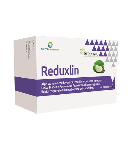 Reduxlin - Descrizione Integratore alimentare con alga wakame gelso bianco e fagiolo. Ingredienti Fagiolo (Phaseolus vulgaris L. frutto) plv gelso bianco (Morus alba L. foglie) e.s. alga wakame [Undaria pinnatifida (Harvey) Suringar tallo] e.s. tit. 10% in fucoxantina; agente di carica: cellu… ...