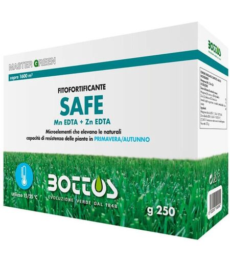 BOTTOS - SAFE / 250 gr - Concime liquido per prato Concime liquido composto da Manganese e Zinco chelati. Adatto per nutrire e rafforzare il tappeto erboso, migliorando anche l'attività di fotosintesi. Assorbibile sia per via fogliare sia per via radicale. Utilizzabile tutto l'anno. BOTTOS - SAFE / 250 gr - Concime liquido per prato Safe è un prodotto Bottos della linea MASTERGREEN, composto da Manganese e Zinco entrambi sotto forma chelata. Questo prodotto è studiato per la nutrizione tecnica dei tappeti erbosi. Manganese e Zinco sono tra di loro antagonisti, e quindi di difficile coesistenza nell’assorbimento da parte delle piante, per questo è bene distribuire un prodotto che contenga tutti e due gli elementi, al fine di fornire un supporto corretto alla nutrizione. Questi due elementi fanno in modo che le piante imparino a difendersi da sole. Safe, inoltre, migliora l'attività fotosintetica delle piante, attiva i processi d’ispessimento ed elasticità delle pareti fogliari con ...