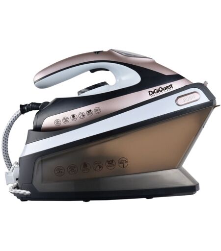 DIGIQUEST Ferro da stiro 2400W con caldaia e piastra in ceramica con display a led, serbatoio trasparente, ricarica acqua continua, colpo di vapore steamy