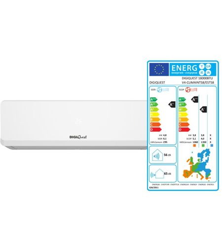DIGIQUEST KIT CLIMA UNITA' INTERNA + UNITA' ESTERNA 18.000BTU INVERTER V4 classe energetica A++ per il raffreddamento e A+ per il riscaldamento (A+++