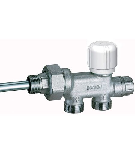 Valvola BITUBO termostatizzabile cromata FAR 1430 Descrizione del Prodotto: Marca FAR Materiale :Ottone cromato attacchi intercambiabili per tubo rame, plastica e multistrato sonda metallica 450 mm ø 12 mm interasse derivazioni 35 mm D = raccordo DESTRO S = raccordo SINISTRO ...