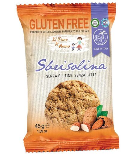Il Pane di Anna - Sbrisolina - Descrizione Prodotto ottenuto dalla miscela di vari ingredienti, certificati senza glutine, adatto ai consumatori celiaci, intolleranti al glutine. - Ingredienti Mandorle, zucchero, margarina [grassi vegetali (cocco) e oli vegetali (girasole), acqua], farina di mais, … ...