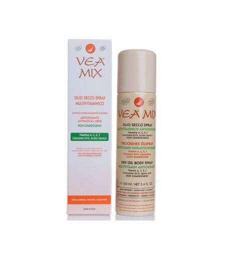 VEA MIX OLIO SECCO SPRAY - VEA MIX è un'associazione innovativa di Vitamine (A, C,E, F) e di antiossidanti (Coenzima Q10 e Acido Lipoico) che apporta alle cellule cutaneeun aiuto funzionale ad ampio spettro. Non contiene acqua, conservanti, profumi e coloranti, per minimizzare i rischi diallergia. … ...