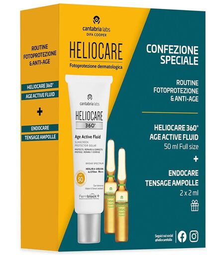 Difa Cooper Spa Routine Fotoprotezione & Anti-Age Heliocare 360° Age Active Fluid + Endocare Tensage, 50 ml + 2 x 2 ml