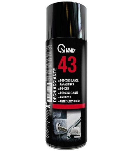 BOMBOLETTA SPRAY VMD 43 DEGHIACCIANTE 200 ML Elimina all'istante ghiaccio, neve e brina da parabrezza e vetri. Scongela serrature e pinze freni. Non intacca la plastica e le guarnizioni. Settori di applicazione: Automobile,Ferramenta e industria Caratteristiche Contenuto: 200 ml Aspetto: liquido/limpido, senza colore Odore: caratteristico Flash point: inferiore a 0°C Densità relativa: 0,80 gr/ml circa Solubilità in acqua: parzialmente solubile Solubilità lipida: solubile Metalli pesanti: non contiene ...