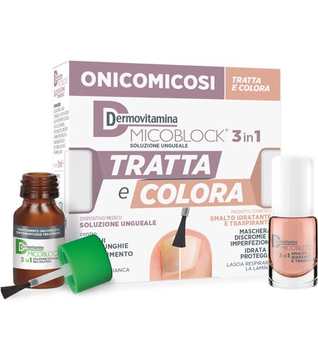 Dermovitamina Micoblock 3 in 1 Tratta e Colora - Soluzione ungueale + Smalto idratante e traspirante - Dermovitamina Micoblock 3 in 1 Tratta e Colora è il kit unghie indicato per la cura e la prevenzione dell'onicomicosi ed è composto da: - Dermovitamina Micoblock 3 in 1 Soluzione Ungueale un dispo… ...