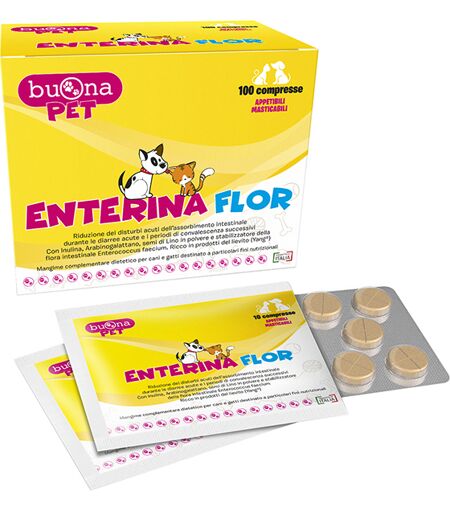 ENTERINA FLOR - Descrizione Mangime complementare dietetico per cani e gatti, destinato a particolari fini nutrizionali per la riduzione dei disturbi acuti dell'assorbimento intestinale. Utile complemento durante le diarree acute e i periodi di convalescenza successivi. ENTERINA FLOR è formulato co… ...