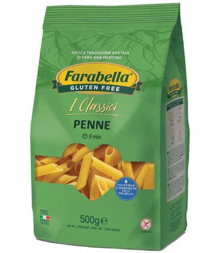 Farabella Penne - Pasta senza glutine. Ingredienti Farina di mais; farina di riso; amido di mais. Modalità d'uso Utilizzare una pentola capiente con abbondante acqua: non meno di 3 litri di acqua per 500 g di pasta. Ad ebollizione viva aggiungere circa 5 g di sale grosso per litro di acqua e calare… ...