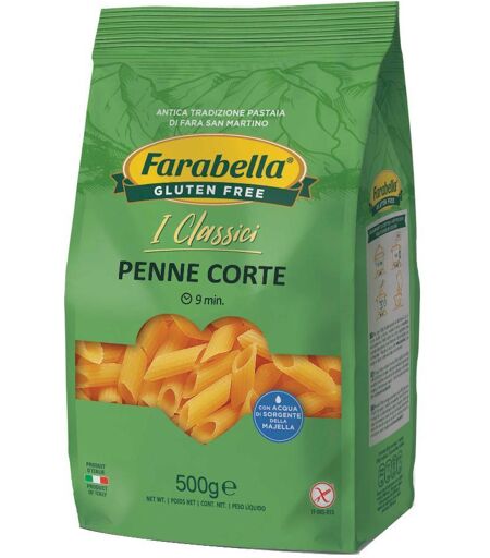 Farabella Penne Corte - Pasta senza glutine. Ingredienti Farina di mais; farina di riso; amido di mais. Modalità d'uso Utilizzare una pentola capiente con abbondante acqua: non meno di 3 litri di acqua per 500 g di pasta. Ad ebollizione viva aggiungere circa 5 g di sale grosso per litro di acqua e … ...