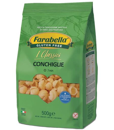 Farabella Conchiglie - Pasta senza glutine. Ingredienti Farina di mais; farina di riso; amido di mais. Modalità d'uso Utilizzare una pentola capiente con abbondante acqua: non meno di 3 litri di acqua per 500 g di pasta. Ad ebollizione viva aggiungere circa 5 g di sale grosso per litro di acqua e c… ...