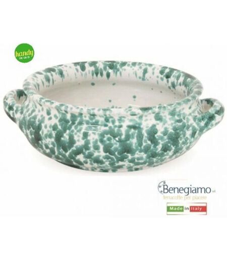 Tegame prodotto dal brand Benegiamo. Tegame in terracotta schizzato verde da 28,5 cm ...