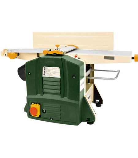 DESCRIZIONE GENERALE Pialla a filo combinata Compa 'Mini Kompacta' per lavorazione legno, con motore a spazzole da 1600 W e alimentazione di 230 V/50 Hz. Dispone di un attacco di aspirazione e una velocità di rotazione di 900 giri/min. Il piano di lavoro misura 254x917 mm, con una larghezza di piallatura di 254 mm e un'altezza di piallatura di 120 mm. L'asportazione massima è di 3 mm e la pialla è dotata di 2 coltelli di dimensioni 254x16,5x1,5 mm. Presenta una squadra inclinabile da 0° a 45° e un attacco dell'aspirazione con diametro di 100 mm. La velocità di avanzamento è di 6 m/min e il peso è di 40 kg. SPECIFICHE TECNICHE Potenza: 1600 W Alimentazione: 230 V/50 Hz Velocità di rotazione: 900 giri/min Piano di lavoro: 254 x 917 mm Larghezza di piallatura: 254 mm Altezza di piallatura: 120 mm Asportazione massima: 3 mm Coltelli: 254 x 16,5 x 1,5 mm Diametro attacco aspirazione: 100 mm Velocità di avanzamento: 6 m/min Peso: 40 kg ...