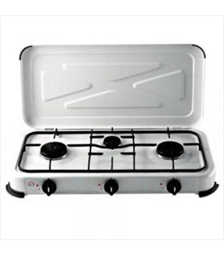 Fornello a 3 fuochi con coperchio anti polvere, accensione manuale, fiamma regolabile, supporto pentole smaltato, funzionamento a gas GPL. ...