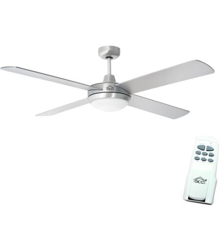 VENTILATORE A SOFFITTO COLORE GRIGIO CON TELECOMANDODCGCOD: VECRD40TL Specifiche del ventilatore da soffitto VE CRD 40 TLSupporto da muro3 velocità4 pale in legno con diametro totale del ventilatore di circa 128 cm1 luceTelecomando inclusoDimensioni: 54 5 x 32 5 x 26cmAlimentazione: 230V_50HzPotenza:60W ATTENZIONE!!!Nelle istruzioni c'è la foto di un vecchio modello di staffa per appendere al soffitto per cui non la troverete nel pacco in quanto non occorre EAN 8032774626515 ...