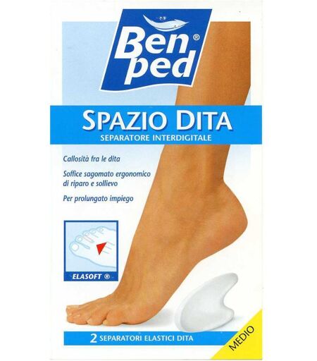 Ben ped SPAZIO DITA SEPARATORE INTEDIGITALE - Divaricatore interdigitale per dita accavallate. Sagomato elastico di sostegno. L’innovativa e singolare struttura Elasoft (elastomeri al 90% di olio minerale) si distingue per elevata elasticità, anche nell’uso prolungato. Lavabili … ...