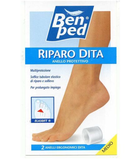 Ben ped RIPARO DITA ANELLO PROTETTIVO - Avvolgente, di protezione per dita lesionate. Sagomato elastico di riparo. L’innovativa e singolare struttura Elasoft (elastomeri al 90% di olio minerale) si distingue per elevata elasticità, anche nell’uso prolungato. Lavabili ripetutamente. Difen… ...