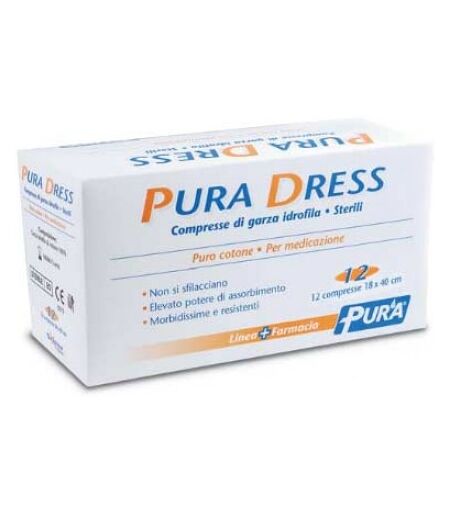 Pura Dress - Descrizione Compresse di garza idrofila. - Proteggono la ferita. - Elevato potere di assorbimento. - Morbide e resistenti. - Formato Confezione contenente 12 compresse 36x40 cm. - Cod. SAL0009 ...