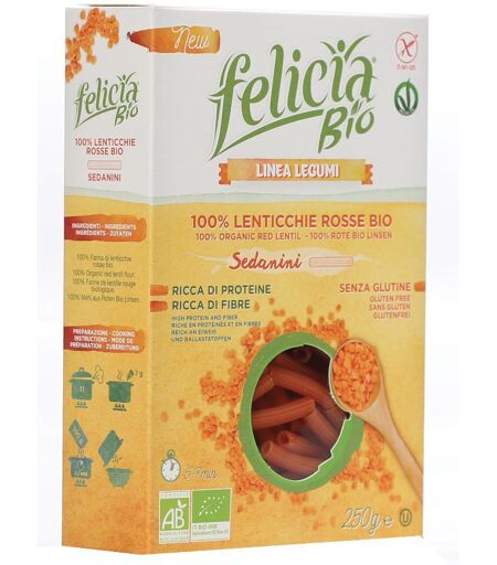 felicia Bio - 100% LENTICCHIE ROSSE BIO Sedanini RICCO DI PROTEINE RICCO DI FIBRE SENZA GLUTINE Prodotto innovativo; indicato per una alimentazione senza glutine, vegana, per chi ama prodotti biologici e per chi segue una dieta bilanciata. Il prodotto è ricco di fibre e proteine. Ad alto contenuto … ...
