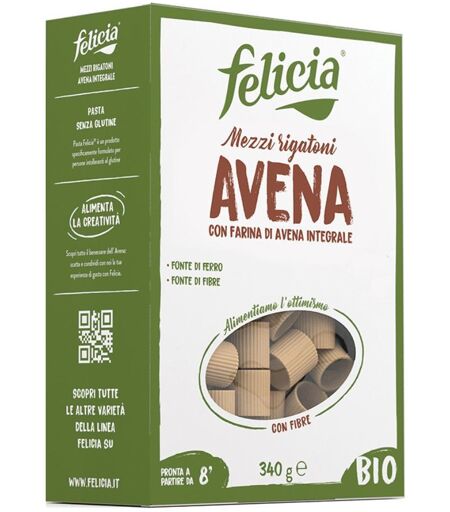 felicia Mezzi rigatoni AVENA BIO - Descrizione Pasta biologica e senza glutine, specificamente formulata per celiaci. Fonte di ferro e fibre. Il ferro contribuisce alla riduzione di stanchezza e affaticamento e al normale metabolismo energetico. Ingredienti 51% farina di avena*, farina di mais*, fa… ...