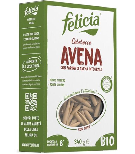 felicia Caserecce AVENA BIO - Descrizione Pasta biologica senza glutine, specificamente formulata per celiaci. Fonte di fibre e ferro. Il ferro contribuisce alla riduzione di stanchezza ed affaticamento e al normale metabolismo energetico. Ingredienti 51% farina di avena*, farina di mais*, farina d… ...